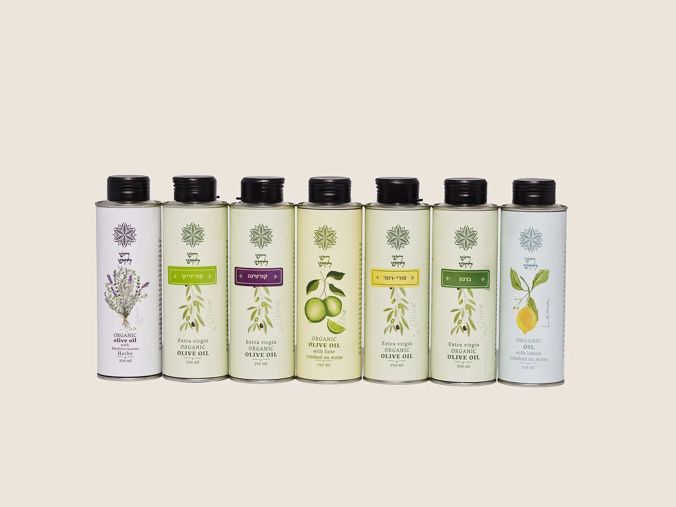 7 Bottles of Rish Lakish's best oils - all their organic natural variants from mild to strong together with 3 of the most popular infused oils.